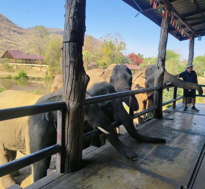 • 09:30 Arrive at Elephants World Sanctuary and join the morning program (09:30–13:00). Start with an introduction and safety briefing, then meet and feed the elephants. You will also help prepare food, enjoy the mud bath activity, and join the elephants for river bathing.